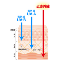 紫外線よりも降り注ぐ量が多い「近赤外線」。紫外線よりも波長が長く、肌の深層部(筋肉)まで到達して筋組織を破壊し、シワやたるみなど老化の原因となることが明らかになりつつあります。