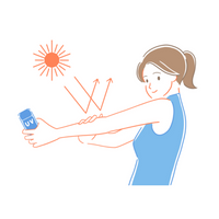- 日焼け止めは、時間と共に効果が薄れてしまいます。汗をかいた時や水などで濡れた時などは、皮膚表面の汚れや汗、水分等をしっかり拭き取ってから塗り直すようにしましょう。また、汗をかいていない状態でも、衣類や手に触れたりすることで日焼け止めが落ちることもありますので、こまめに塗り直すことを心がけましょう!