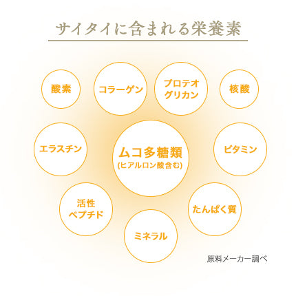 「サラプラEX」を、さらにパワーアップさせる「サラサイタイ」は、胎盤につながる「サイタイ(へその緒)」のエキスです。お腹の中で赤ちゃんに栄養を与え、健康に育てる役割を果たすための栄養素が豊富に含まれていると言われています。