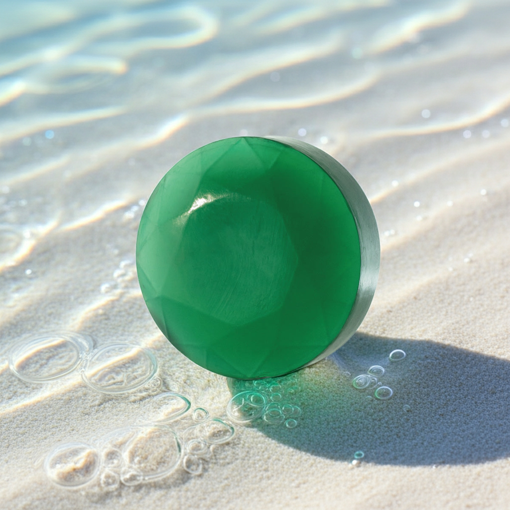別名“ウルトラマリン”と言い、天然の鉱石由来のグリーンが海洋深層水の深海をイメージしてます。